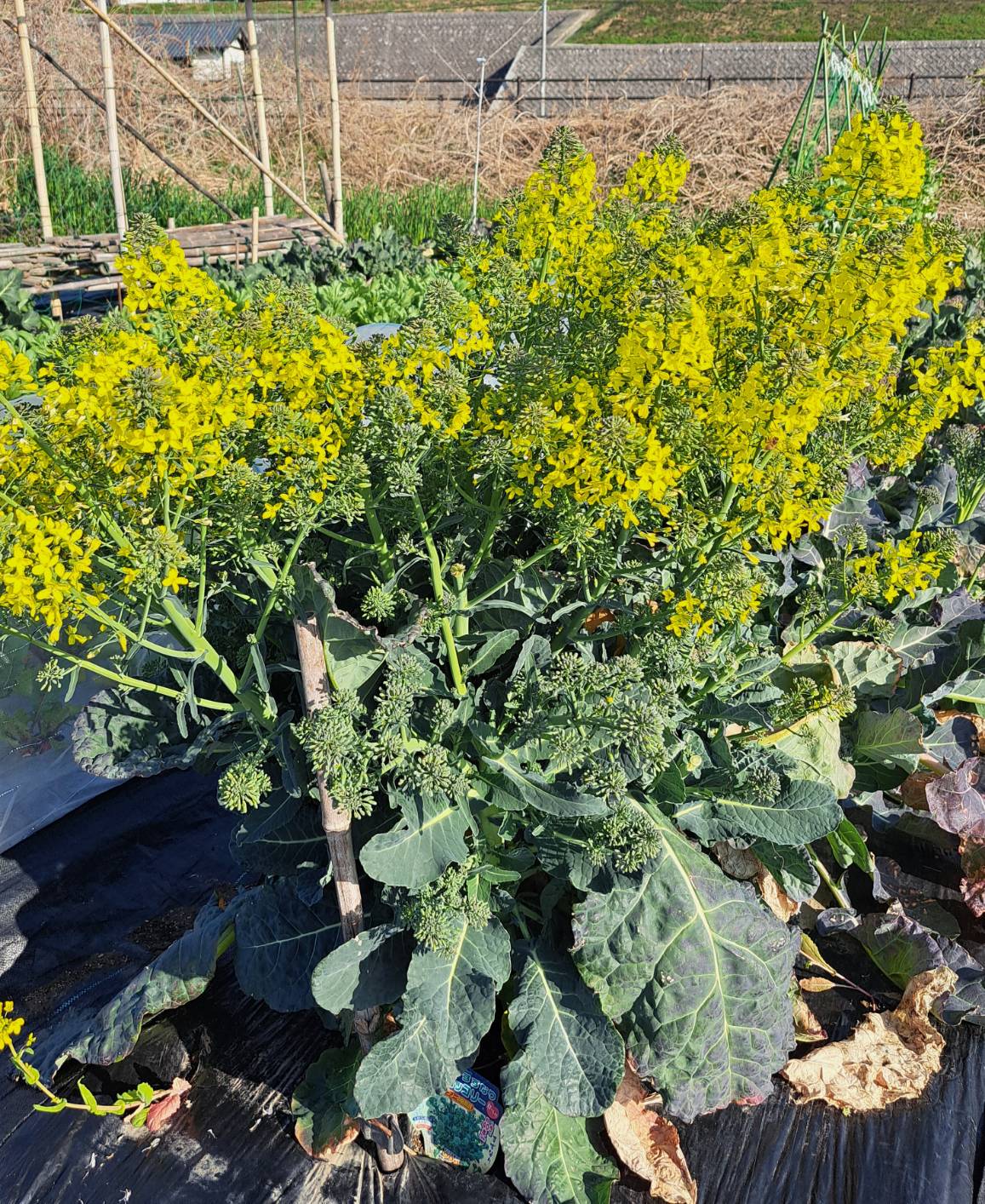 1ヶ月ほど、種まきが遅れたので、白菜が巻きおうせず、とうとう、花を着けました。